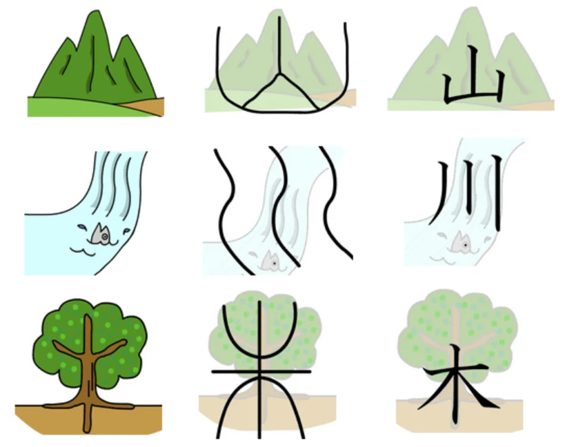<Note> “yama” of “Oomuro-yama” means “mountain” and the Kanji is “山”.  It’s also read “san” as a part of “Fuji-san”.  “大室山Oomuro-yama” & “富士山 Fuji-san”.  A lot of kanji-es are made from how they look as shown below, "mountain" "river" and "tree".